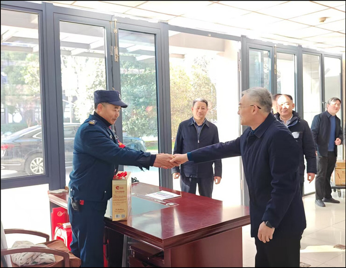 每到一處,鄔平川親切地與大家握手交談,對(duì)同志們春節(jié)期間放棄與家人團(tuán)聚,始終堅(jiān)守崗位、無(wú)私奉獻(xiàn)表示衷心感謝,希望通過(guò)他們向其家人轉(zhuǎn)達(dá)節(jié)日的祝福,并為大家送上慰問(wèn)品。走訪(fǎng)慰問(wèn)中,鄔平川詳細(xì)了解值班安排以及設(shè)施設(shè)備運(yùn)行等情況,囑咐相關(guān)部門(mén)負(fù)責(zé)同志和值班人員,要牢固樹(shù)立安全第一的思想,牢記崗位職責(zé),始終保持高度責(zé)任心;要加強(qiáng)巡邏檢查,重點(diǎn)做好防火防盜工作,確保各校區(qū)供水、供電和交通正常運(yùn)行,有力開(kāi)展安全保衛(wèi)等工作,確保校園安全穩(wěn)定。