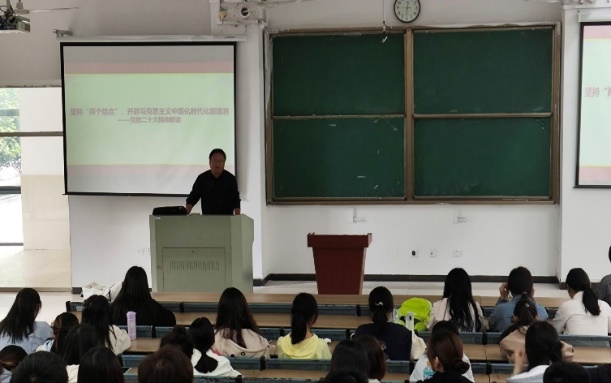 本次黨課由校宣傳部部長(zhǎng)賈峰老師主講,以“堅(jiān)持‘兩個(gè)結(jié)合’” —黨的二十大精神解讀”為主題。通過(guò)專(zhuān)題演講、案例分析、互動(dòng)交流等多種形式全面系統(tǒng)地學(xué)習(xí)了意識(shí)形態(tài)工作是為國(guó)家立心為民族立魂的工作、深刻認(rèn)識(shí)意識(shí)形態(tài)工作的重要性、黨的二十大關(guān)于意識(shí)形態(tài)工作的戰(zhàn)略部署、建設(shè)具有強(qiáng)大凝聚力和引領(lǐng)力的社會(huì)主義意識(shí)形態(tài)等內(nèi)容。