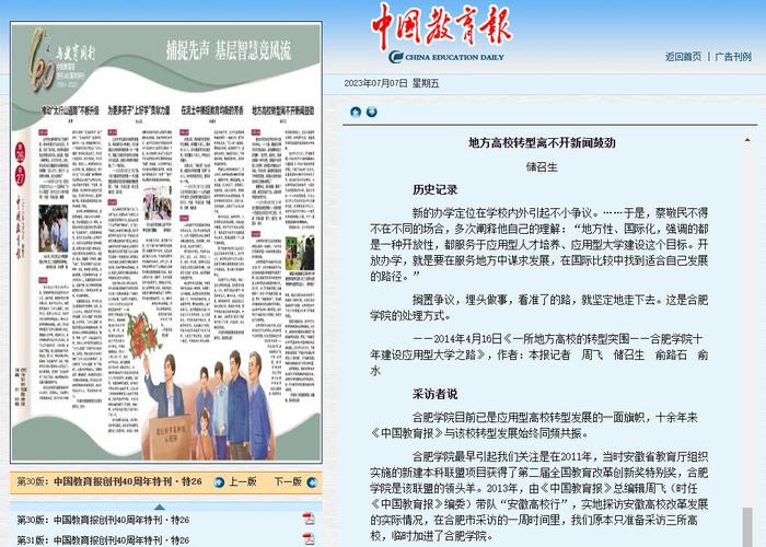 中國(guó)教育報(bào) 地方高校轉(zhuǎn)型離不開(kāi)新聞鼓勁 2023年7月7日