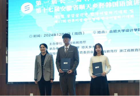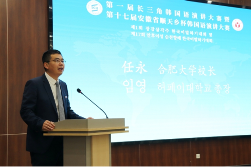 On December 5, the First Yangtze River Delta Korean Speech Contest, also known as 17th Anhui Province “Soonchunhyang Cup” Korean Speech Contest was held at Hefei University (HFU). Ren Yong, President of HFU and Kim Yong-ha, Vice President of Soonchunhyang University (SCH), attended the opening ceremony.