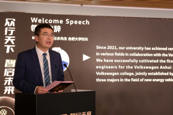 Ren Yong pointed out, HFU, as one of the earliest universities to explore dual-system higher education reform, has adhered to the concepts of openness, innovation, and win-win cooperation, optimized its academic and disciplines layout, deepened the industry-education-city integrated development, and explored the Hefei Model of dual-system higher education to cultivate engineers right at the doorstep; since 2021, HFU has cooperated with the Volkswagen Group to build the Volkswagen College, training the first batch of seed engineers for the Volkswagen Anhui Pilot Center, and developed a team of dual-competency teachers, contributing to the development of Anhuis leading industry; the New Energy Vehicle Experience Center will provide students of the Volkswagen College and Volkswagen Group employees with a cutting-edge learning and experiential platform, helping them gain an immersive understanding of automotive culture, stay abreast of technological trends of new energy vehicles, and develop innovative thinking and hands-on capabilities.