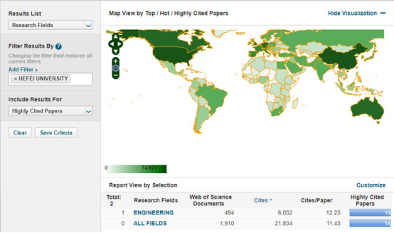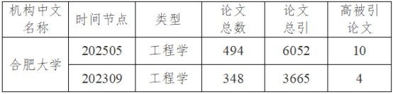 On May 8th, Clarivate released the latest statistical data for the Essential Science Indicators (ESI), covering the period from January 1st , 2015 to February 28th , 2025. Since Engineering discipline in HFU entered the top 1% of ESI in September 2023, its overall ranking has shown a significant improvement, advancing by 263 places. Additionally, HFU currently boasts a total of 14 ESI highly cited papers.