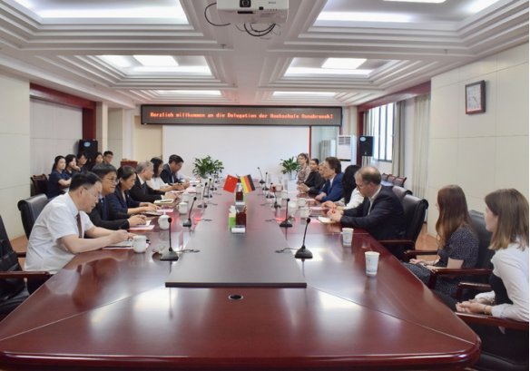 Wang Qidong warmly welcomed the delegation and introduced HFUs development in recent years. He said, the two universities have maintained the long-standing close cooperation: jointly establishing programs, co-hosting Sino-German Seminars on Applied Higher Education, and co-editing and publishing Research on Applied Higher Education. He expressed his hope, the two parties will further deepen cooperation and set up more diverse exchange programs to promote mutual in-depth integration. Chen Xiu, Vice President of HFU, expressed her hope, the two universities can carry out more in-depth academic exchanges to make full use of the high-quality educational resources, and jointly cultivate high-quality compound, international, and applied talents.