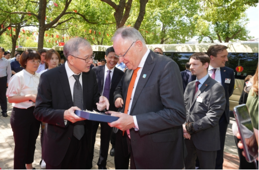 On the afternoon of May 29th, Mr. Stefan Weil, Governor of Lower Saxony, Germany, and his delegation visited Hefei University (HFU), accompanied by Wang Qingxian, Governor of Anhui Province. Wang Qidong, Chair of HFU Council, welcomed them in front of the Sino-German Friendship Grove and presented Weil with a commemorative gift for the 30th anniversary of the sister state /province relationship.