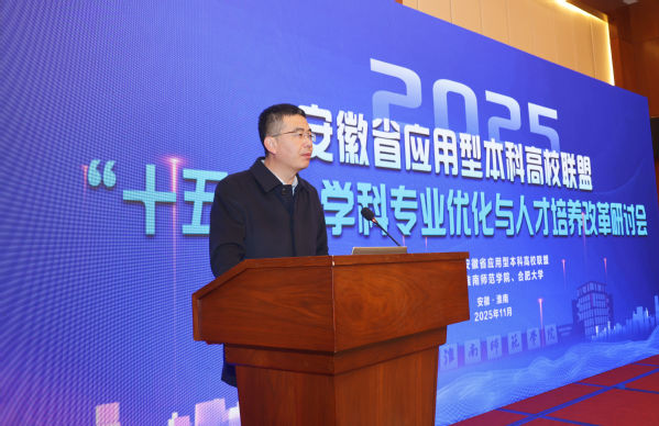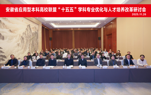 11月26日,由安徽省應(yīng)用型本科高校聯(lián)盟主辦、淮南師范學(xué)院、合肥大學(xué)承辦的安徽省應(yīng)用型本科高校聯(lián)盟“‘十五五’學(xué)科專(zhuān)業(yè)優(yōu)化與人才培養(yǎng)改革”研討會(huì)在淮南舉行。聯(lián)盟常任主席單位合肥大學(xué)黨委副書(shū)記、校長(zhǎng)任永,聯(lián)盟輪值主席單位淮南師范學(xué)院黨委副書(shū)記、院長(zhǎng)程剛出席會(huì)議。聯(lián)盟成員高校分管副校長(zhǎng)、教務(wù)處等相關(guān)領(lǐng)域負(fù)責(zé)人以及聯(lián)盟秘書(shū)處人員共計(jì)近百人共聚一堂,共謀安徽省應(yīng)用型高校人才培養(yǎng)新篇章。
