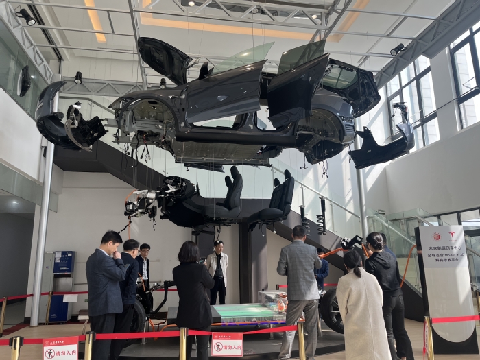 宋海峰介紹了安徽省應(yīng)用型本科高校聯(lián)盟概況和近期工作,說(shuō)明了來(lái)訪(fǎng)目的,希望通過(guò)調(diào)研,加強(qiáng)與長(zhǎng)三角地區(qū)應(yīng)用型本科高校的交流,推動(dòng)聯(lián)盟高校微專(zhuān)業(yè)建設(shè)工作。 吳懋亮向聯(lián)盟高校調(diào)研組的到來(lái)表示歡迎,并介紹了上海電力大學(xué)現(xiàn)代產(chǎn)業(yè)學(xué)院建設(shè)工作。張傳林帶領(lǐng)聯(lián)盟高校調(diào)研組參觀(guān)了上海電力大學(xué)特斯拉產(chǎn)業(yè)學(xué)院,就特斯拉產(chǎn)業(yè)學(xué)院的新能源汽車(chē)微專(zhuān)業(yè)建設(shè)情況進(jìn)行了詳細(xì)介紹。聯(lián)盟高校調(diào)研組認(rèn)真聽(tīng)取交流發(fā)言,雙方就現(xiàn)代產(chǎn)業(yè)學(xué)院及微專(zhuān)業(yè)建設(shè)相關(guān)問(wèn)題進(jìn)行了深入交流。